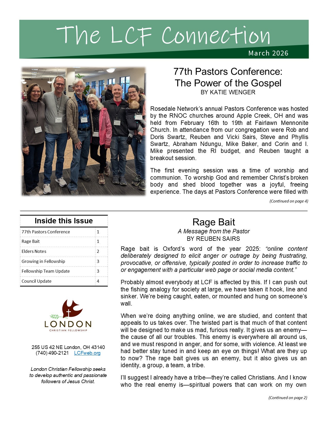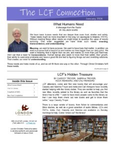 The LCF Connection is a monthly newsletter designed to enhance communication at London Christian Fellowship. We would love to hear from you! We welcome your feedback and suggestions.
